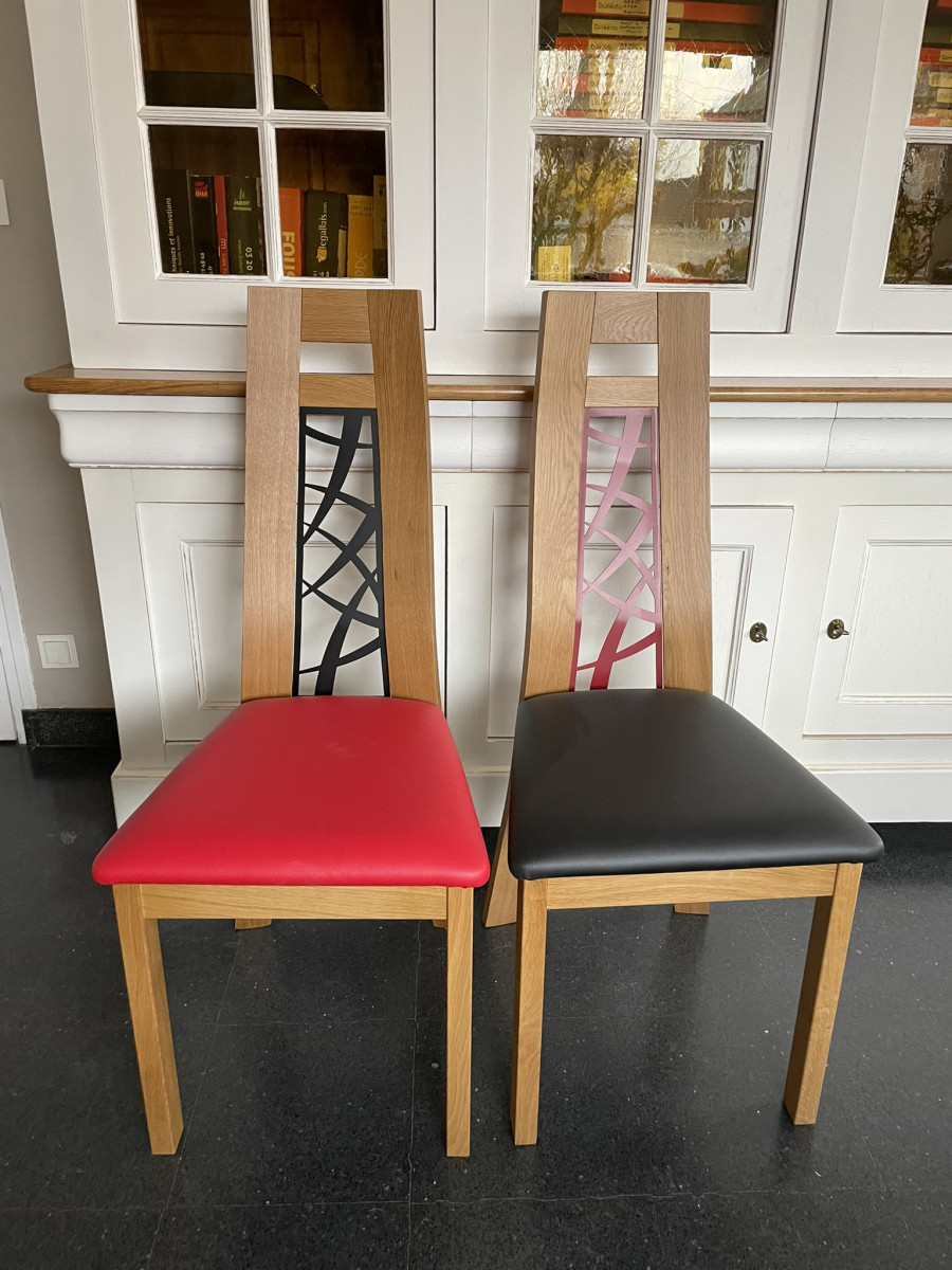 Toutes nos chaises peuvent être teintées et vernies selon vos souhaits, chêne naturel, aspect brut, chêne clair ou foncé. Autres couleurs sur demande.